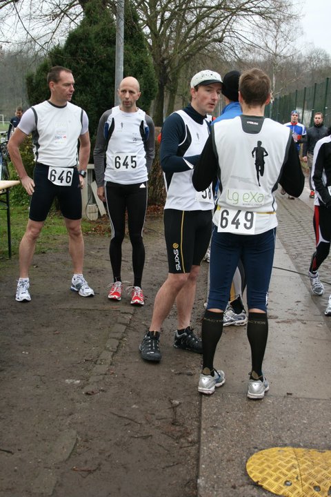 rannte ich durchs Ziel. Endlich! Medaille empfangen und erstmal am Gitter anlehnen. Nochmals Gefühlsausbrüche und dann erstmal ein paar Becher Tee eingeworfen... Nur nicht stehenbleiben oder gar setzen, das wusste ich noch von meinen letzten Marathons (man, das ist schon 6 Jahre her...). Also nochmals zum Berg gegangen und Bekannte Gesichter gesucht aber keines gefunden. Jetzt wurde es auch richtig kalt und somit ab zur Gepäckwiese und erstmal Alex anrufen, der jetzt an der Marathonmarke stand und versuchte den Mann von Mikatiming zu bestechen, ob ich durch bin oder nicht... Dann umziehen. Jetzt traf ich Ronald, der den SM in 6:04 finishte (Gesamt-20.) und eine bibbernde Manu (Gesamt-13. und AK-2. beim SM 7:06). Köstritzer reingeplumpt und der Versuch, eine Bratwurst zu essen - wie immer: geht nicht. Dirk nochmal getroffen, sowie endlich auch Alex und Susi sowie alte Läuferbekanntschaft aus der Heimat. Dann folgte der einzige Makel des Tages: Bustransfer nach Neuhaus (7€ und stehen müssen..., die HMler fahren umsonst...). Dort spuckte der Bus zu 90% nur staksende Zombies aus. Ich zählte diesmal nicht dazu: keine Probleme und auch heute ist das Treppensteigen fast kein Thema und selbst zum Fussballspiel im Clarapark reichte es heute schon! Also, alles richtig gemacht! Und auch für den Verein ein wirklich erfolgreicher Tag, denn neben den bereits erwähnten Resultaten erzielte Jörg einen fantastischen 4.Gesamtrang beim Supermarathon (5:32, das wäre Platz 2 letztes Jahr geworden) und Alex lief beim Halben seine angekündigte 1:30er Zeit.
