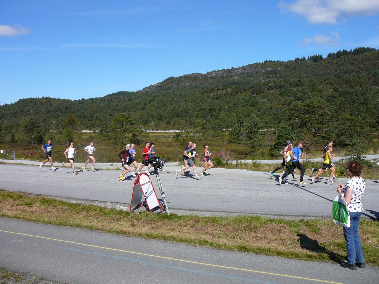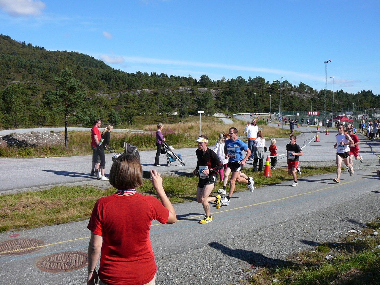 3:35:10 überquerte (hey, das ist sogar PB...). Unten im Tal wollte eigentlich Alex als persönlicher Antreiber und Fotograf warten und mich den finalen "Scharfrichterberg" hochjagen. Da ich aber doch viel früher als erwartet hier auftauchte, war da keiner... Viele Halbmarathonis säumten den Berg oder liefen bereits runter zu den Bussen. Diesen Berg wollte ich unbedingt rennend bezwingen und so ging es sogar recht "easy" wobei mir Matthias, der kurz vorm "Gipfel" stand bestätigte, dass "entspannt" wohl anders aussieht... Oben kommt ein bisschen TourDeFrance-Feeling auf, wenn man durch das Menschenspalier rennt! So, noch einmal um den Sportplatz. Jetzt merkte ich wieder deutlich meinen rechten Oberschenkel, doch egal, auch kein Zielsprint, sondern lieber die letzten Meter geniessen und nach