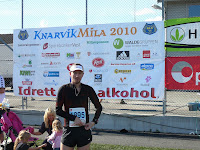 Die Veranstaltung "Knarvikmila" ist ein supertoller und bestens organisierter Lauf. Kein Wald- und Wiesenlauf, sondern eine Veranstaltung, die kanpp 8000 Teilnehmer (auf alle Strecken verteilt) und verhältnissmäßig viele Zuschauer anlockt. zudem tummeln sich hier immer wieder Norwegens Wintersportler (Björndalen, Hjelmeset, Vik) sowie nationale Laufelite (Kirsten Otterbu) aber auch dunkelhäutige Nichtnorweger. Ein solcher gewann übrigens den Halbmarathon Samstagabend in 1:03:xx und Sonntag dann gleich noch den 10er in 29:xx (mehr muss man nich sagen...).